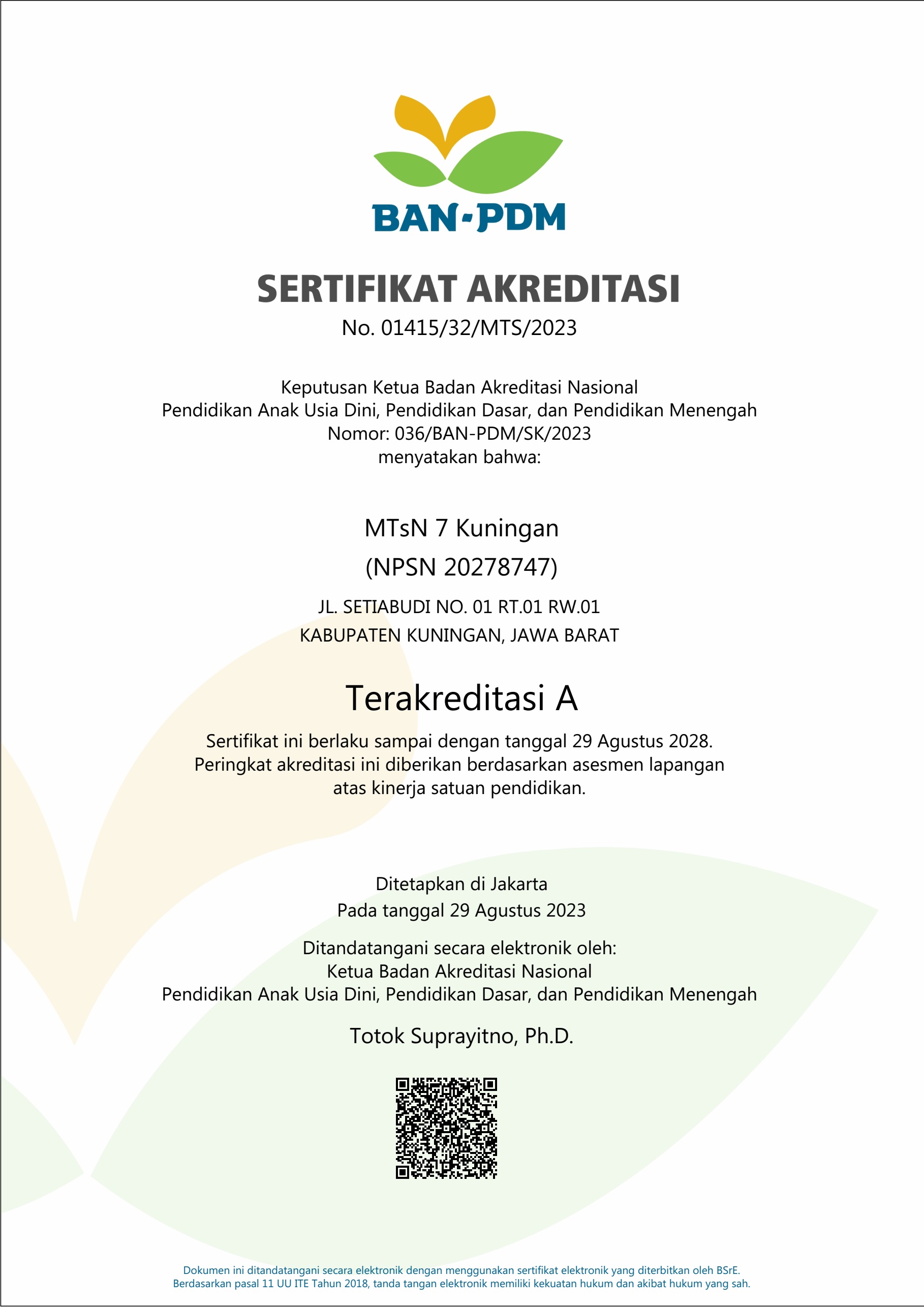 Alamat JL. SETIABUDI NO. 01 RT.01 RW.01, KABUPATEN KUNINGAN, JAWA BARATTerakreditasi A (Unggul) dengan Nilai 94